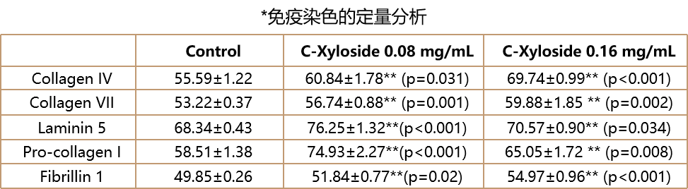 Ⅰ.0.08mg/mL或0.16mg/mL的C-木糖苷對(duì)DEJ特異性蛋白在人重建皮膚中沉積的影響