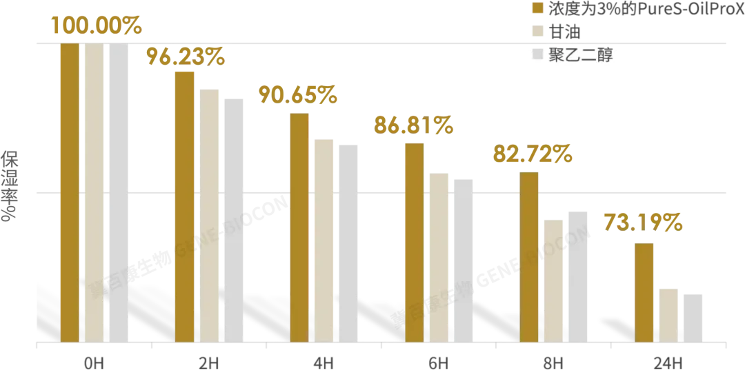 Ⅰ.添加3%濃度的透明油溶S-玻色因24H內(nèi)各時(shí)段保濕率變化